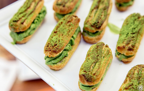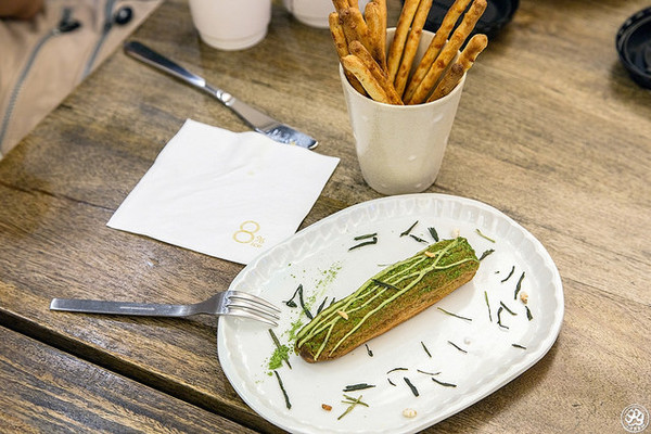 抹茶閃電泡芙入口時表面抹茶粉的香氣便輕輕跳上味蕾,咬下後泡芙皮的輕香微酥拌隨著香濃的抹茶餡爆了開來,抹茶香之餘還帶著淡淡迷人的後微苦和奶油的緩甜,一口咬下飽嘴又美味。
