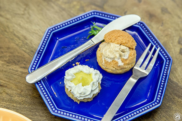 咖啡閃電泡芙同樣也有一口吞小泡芙的不同造型。入口後迷人的咖啡香伴著不低的甜度一躍而出,略濃微纏的咖啡醬和微酥的泡芙皮挺搭的,但同樣有略甜的小問題,但搭配好茶卻又那麼的剛好。