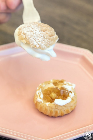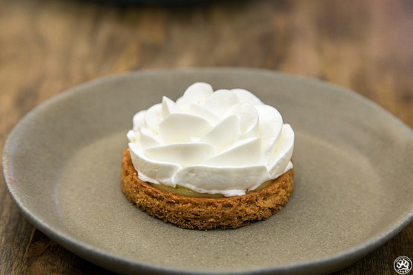 檸檬塔同樣有大小兩種不同的樣式,上面一大團的鮮奶油居然不甜不膩的在嘴裡游移,當中檸檬拌隨著金橘不同層次的酸、甜、香,搭配酥酥脆脆的塔底相當美味。