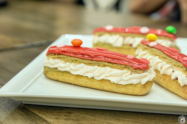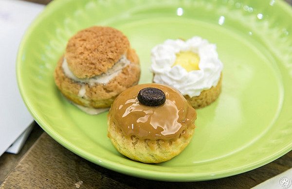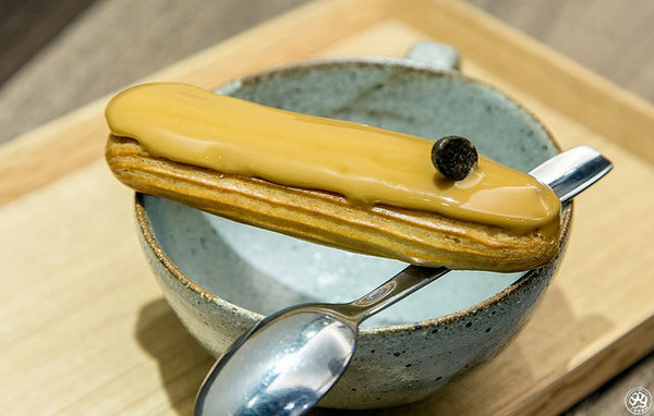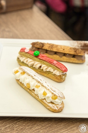 接下來是幾款約莫一個月前吃的閃電泡芙,老實說我也不曉得之後有沒有得吃..包著整粒醋栗的奶油閃電泡芙,果酸十分迷人,咬開後果汁和鮮奶油混和的水滑口感很是迷人。