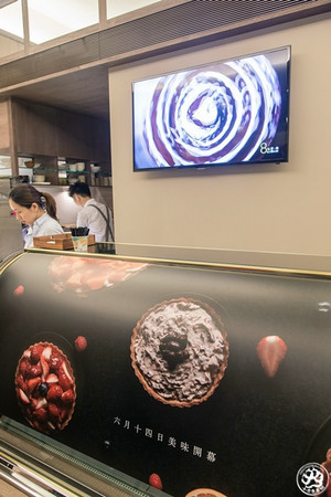 店裡的牆上播著8%ice甜、鹹點心屋製作甜點的過程影片,似乎也陳述著8%ice品牌的堅持和用心。
